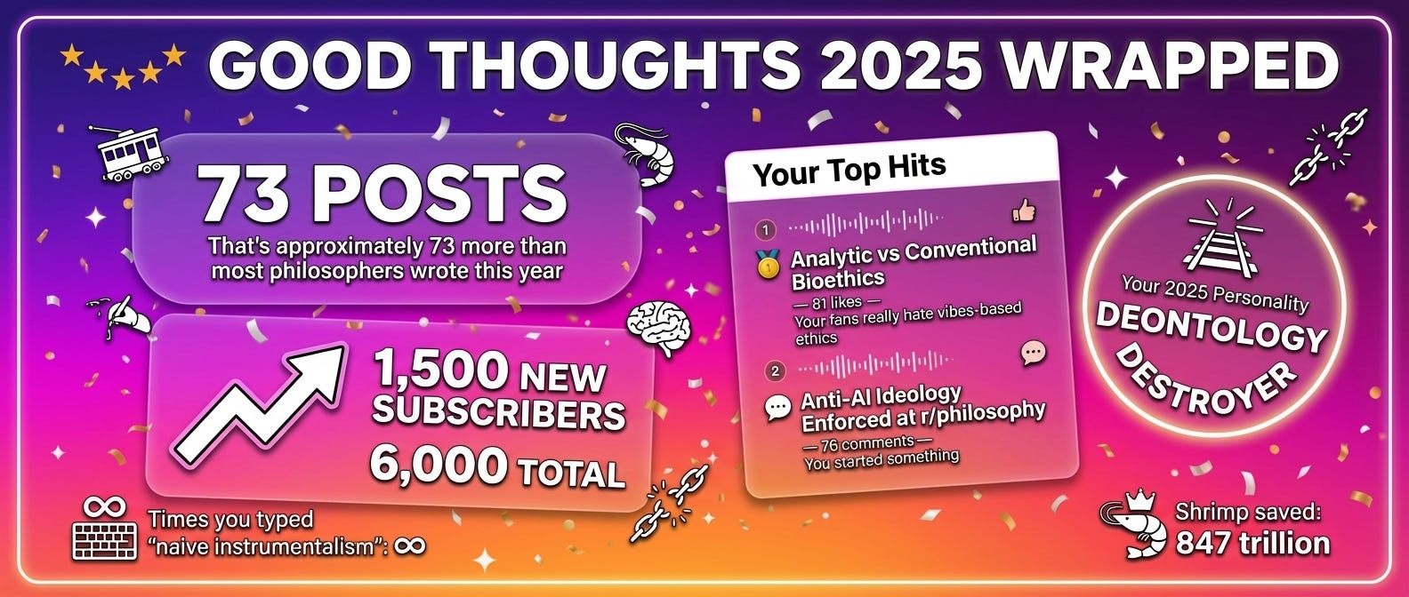 Thanks for following Good Thoughts! Feel free to post requests or general feedback in the comments below. If you’re new this year, you might also find some articles of interest from 2024, 2023, 2022, or my prior 18 years of blogging at philosophyetc.net.