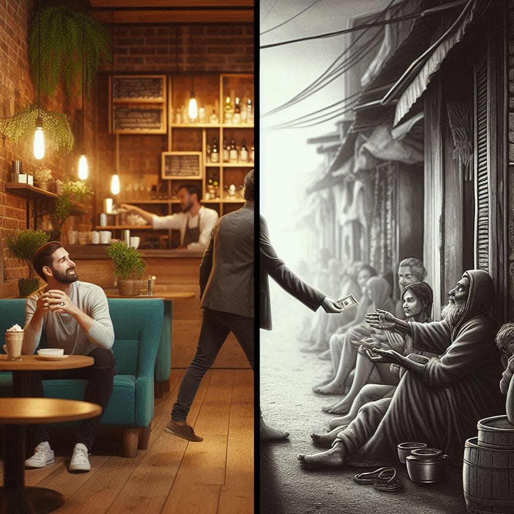 We learn to turn away, and ignore the needs of the world outside our local bubble. If people try to draw our attention back, we may even react with hostility: accusing them of being “preachy”, or “holier-than-thou”, or engaging in some kind of underhanded “guilt-tripping.” (How dare you break the social contract of mutually supporting each other’s delusions of decency, as we sip champagne while children starve?) We find—and elevate—other moral causes, preferably ones “closer to home”, that make fewer demands on our pocketbooks. We tell each other that it’s the personal touch that matters: being kind to our friends and colleagues; tipping workers generously; and pursuing every possible advantage or source of cultural enrichment for our children.